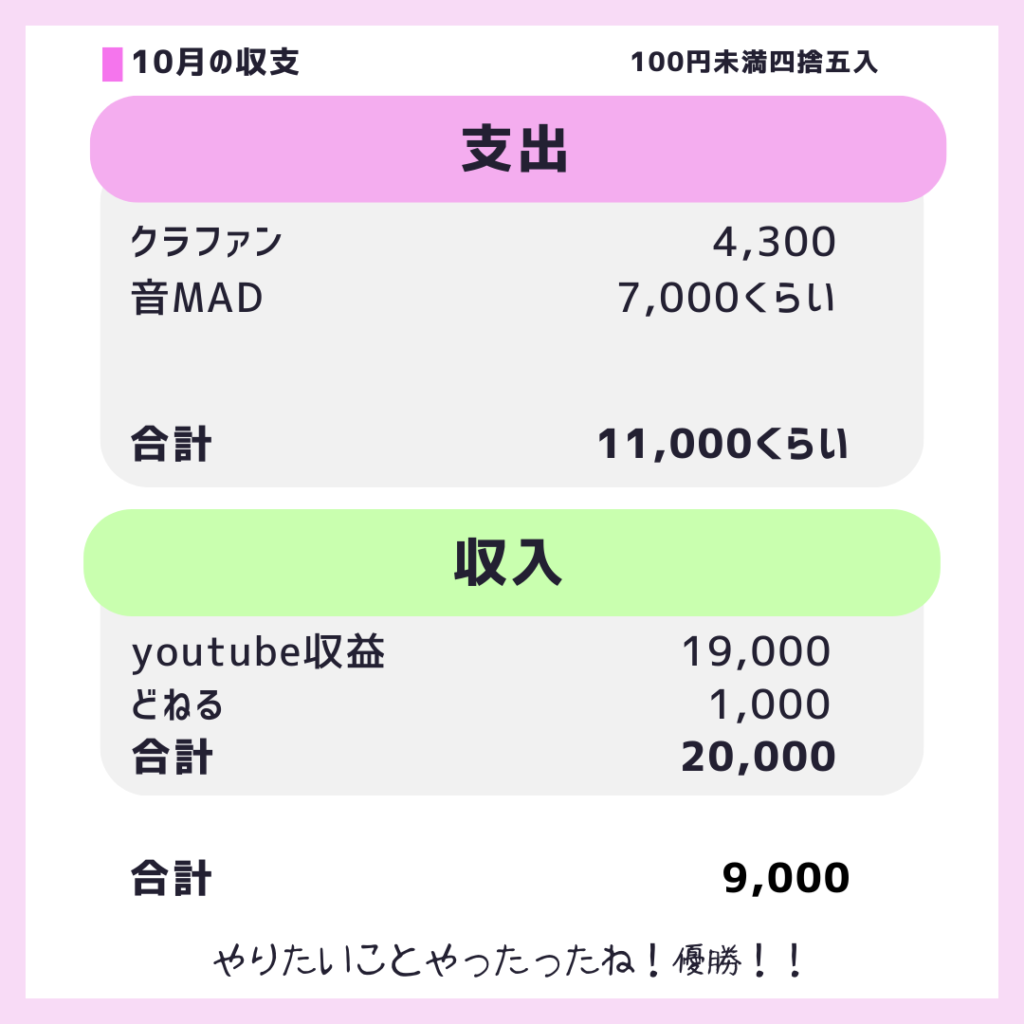クラファンは9月分の支出だったんだけど忘れてたからこちらに記載しておきます! ごめんね!!