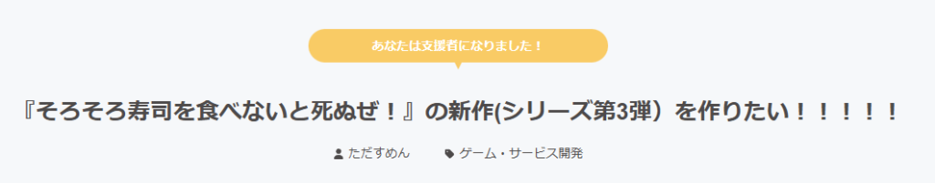 ということで、そろそろ寿司を食べないと死ぬぜ!の新作がでるように支援させていただきました!