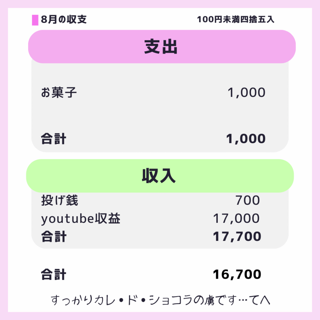 と言うわけで8月の収支をドン⭐︎